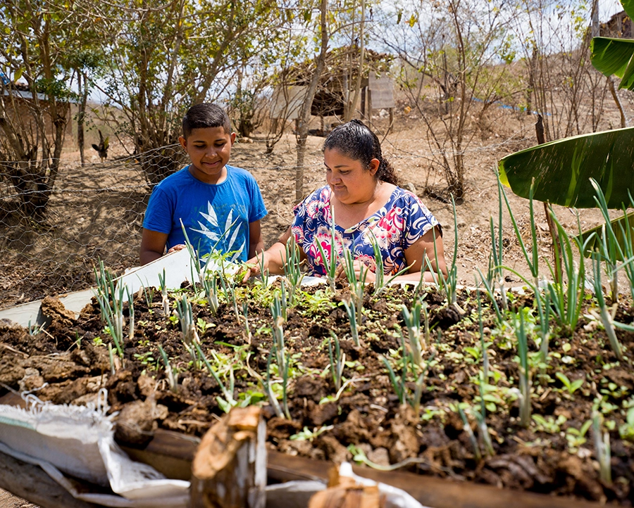Os pais de Alice são agricultores e precisam fazer trabalhos informais para complementar a renda. Toda a família tem se beneficiado das oficinas e projetos capitaneados pela ActionAid junto com nossa parceira local AS-PTA.